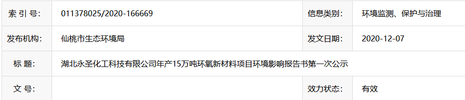 项目名称:湖北永圣化工科技有限公司年产15万吨环氧新材料项目