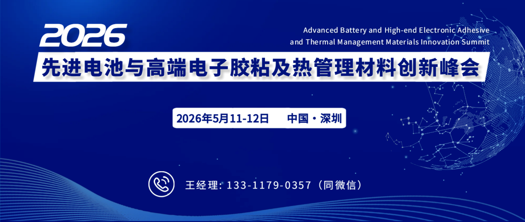为推进胶企精准把脉先进电池及高端电子胶粘和热管理材料行业最新发展趋势和机遇,助推中国高端用胶产业快速高质发展,在已成功举办三届电池胶和10多场电子胶技术论坛的基础上,粘接资讯、新材料产业联盟深度携手深圳市电池行业协会、广东省电子信息行业协会,在“CIBF2026年中国国际电池技术展览会”同期2026年5月11-12日在深圳联合举办“2026先进电池及高端电子胶粘与热管理材料创新峰会”。